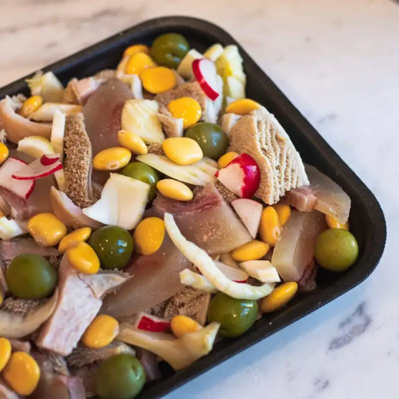 Это блюдо — визитная карточка народной кухни Кампании и пример старой традиции «ничего не выбрасывать». В ход идут свиные ножки (’o pere) и говяжий нос (’o musso). Их долго варят, затем охлаждают, нарезают небольшими кусочками и подают как закуску.